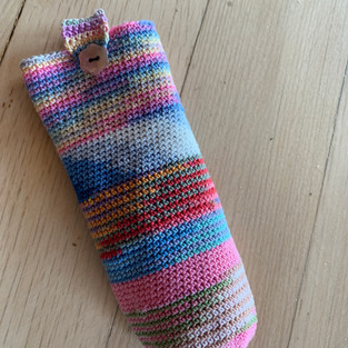 残っていた、糸を集め、編み始めていた、メガネケースも出来上がりました。